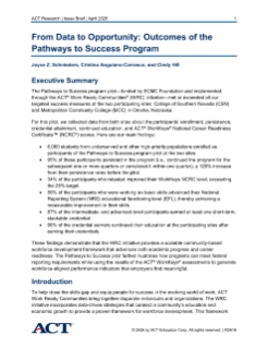 This issue brief summarizes our findings for each of five measures of success and demonstrates how the pilot Pathways to Success program helped both the participants and the two communities.